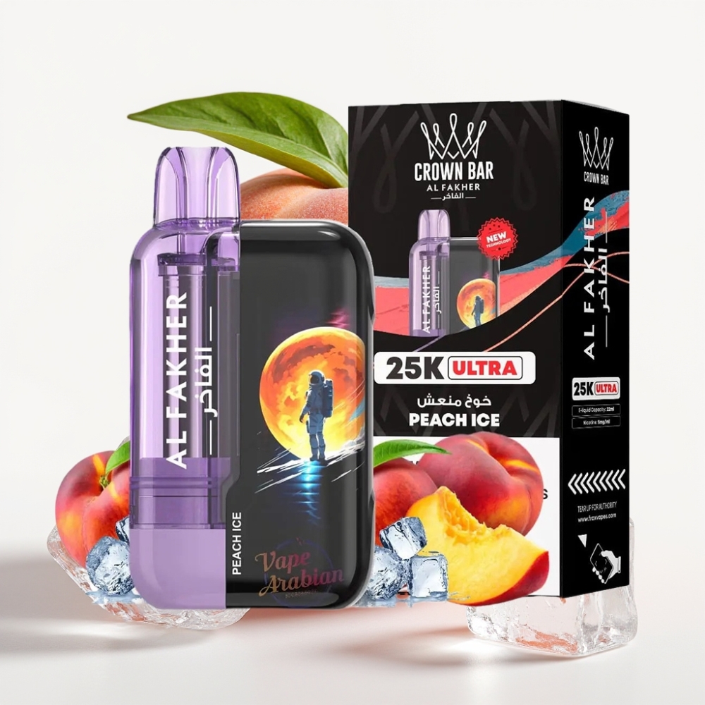 Al Fakher Crown Bar Ultra 25K ar LED displeju un Type-C, Persiku Ledus