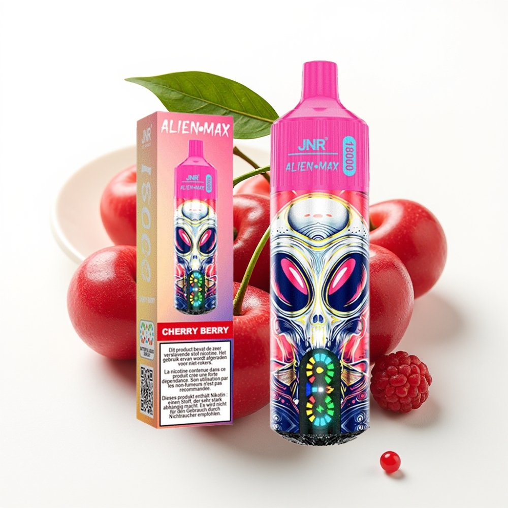 JNR Alien Max 18000 Puffs Dual Mesh Coil Smart LED Display ķiršu ogu