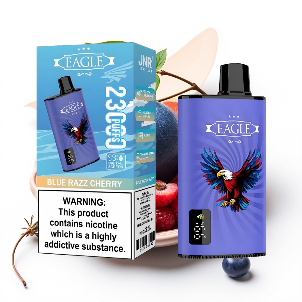 JNR EAGLE Smart 23000 Puffs Digitālais Displejs, 1.0ohm Coil, Type-C Zilā Aveņu Ķiršu