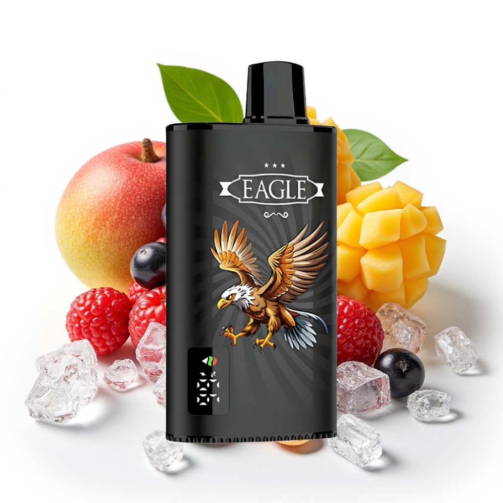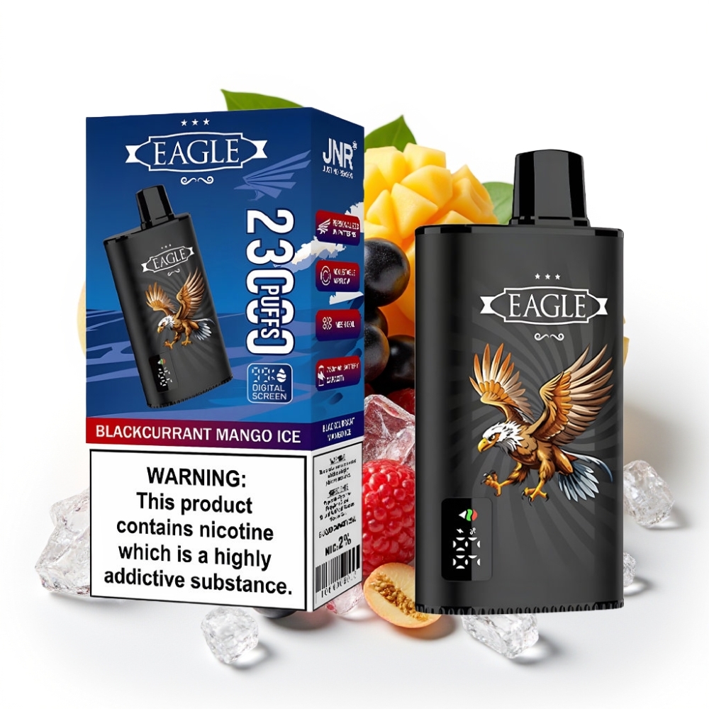 JNR EAGLE Smart 23000 Puffs Digitālais ekrāns 1.0ohm Coil Type-C Melnā upene Mango Ledus