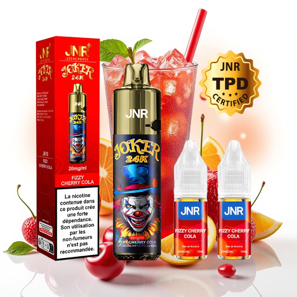 JNR Joker 24K Puffs Refillable Pod 800mAh Fizzy Cherry Cola (Pūstošā Ķiršu Kola)