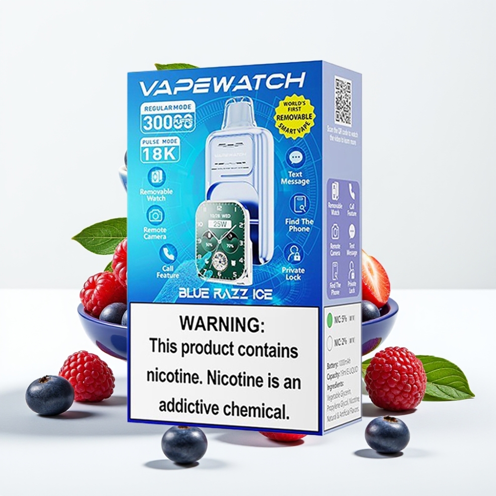 JNR VapeWatch 30000 Puffs Disposable Vape 1000mAh Type-C Zilā Aveņu Ledus