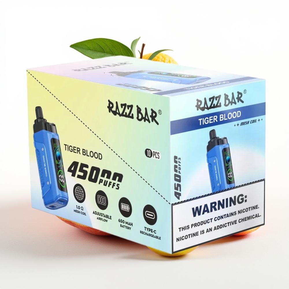 Razz Bar 45000 Puffs Adjustable Airflow Type-C Rechargeable Tigrs Asins
