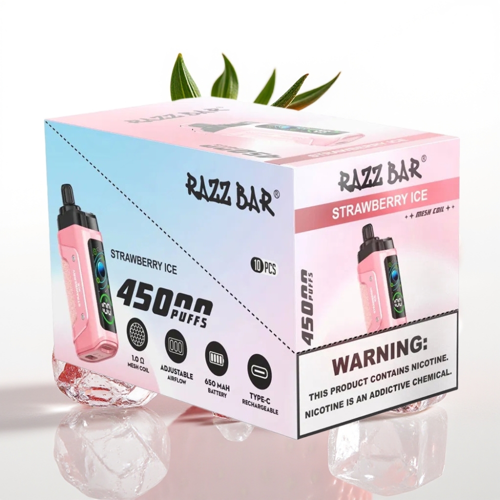 Razz Bar 45000 Puffs Disposable Vape Type-C Adjustable Airflow Zemeneņu Ledus