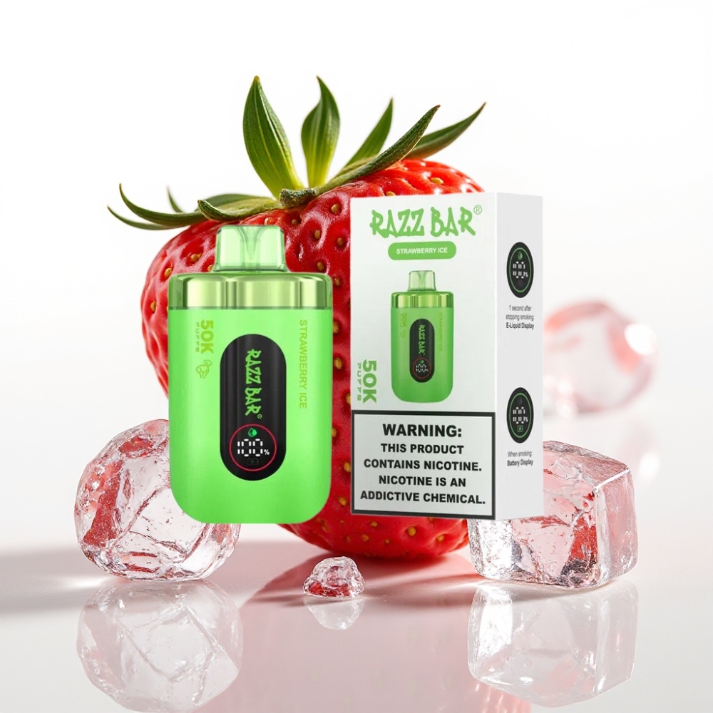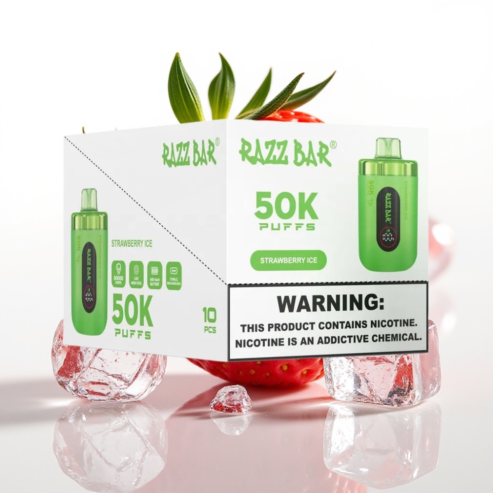 Razz Bar 50K Puffs Disposable Vape 1.0 Ohm Mesh Coil Type-C Zemeņu Ledus