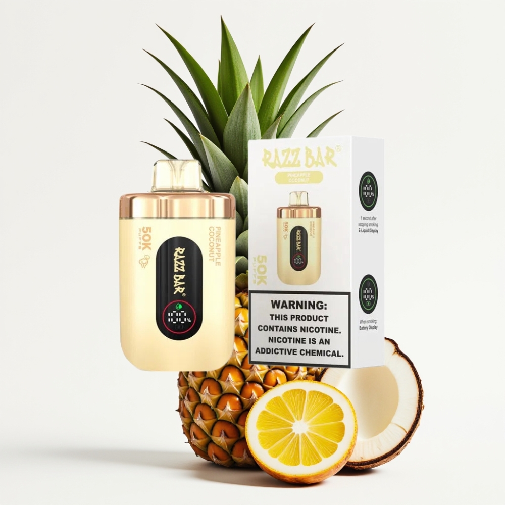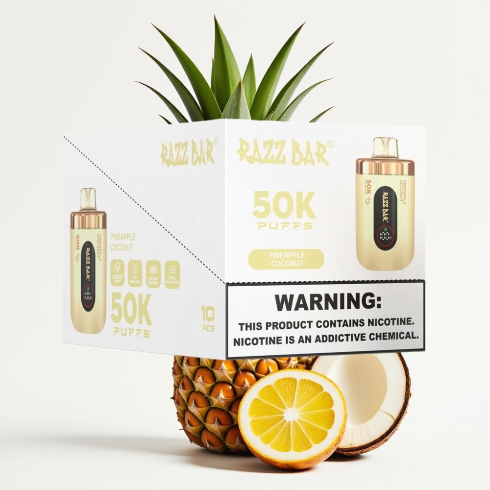 Razz Bar 50K Puffs Disposable Vape 1.0 Ohm Mesh Type-C Ananāsu Kokosriekstu