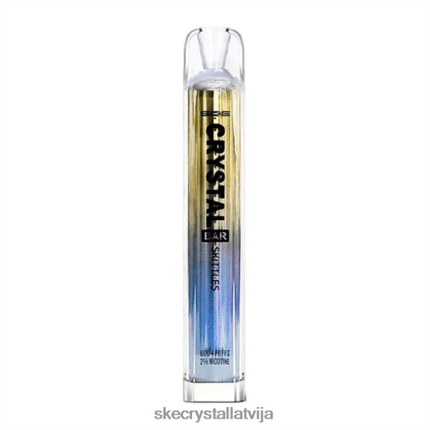 ske kristāls vapesir kompaktas, plānas struktūras, vieglas un pārnēsājamas, kā arī viegli pārnēsājamas kabatās un somās, kas nozīmē, ka tās ir ērti lietojamas. katrā vienreizējās lietošanas batoniņā ir 2 ml e-šķidruma ar 20 mg nikotīna stiprumu, un to darbina integrēts 500 mah akumulators, kas spēj veikt līdz pat 600 piepūtienus.