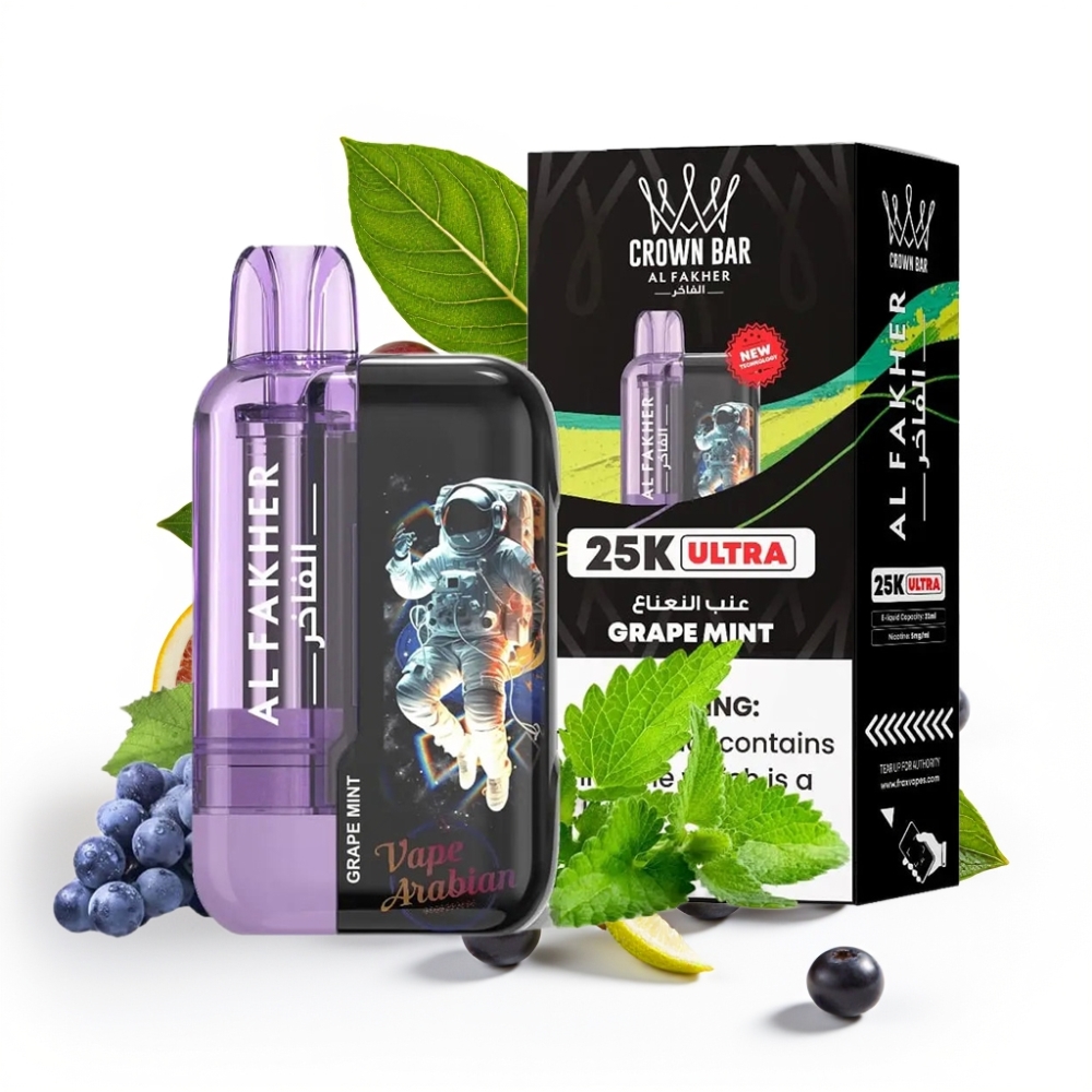 Al Fakher Crown Bar Ultra 25K Disposable Vape 22ml 50mg LED vīnogu mētra