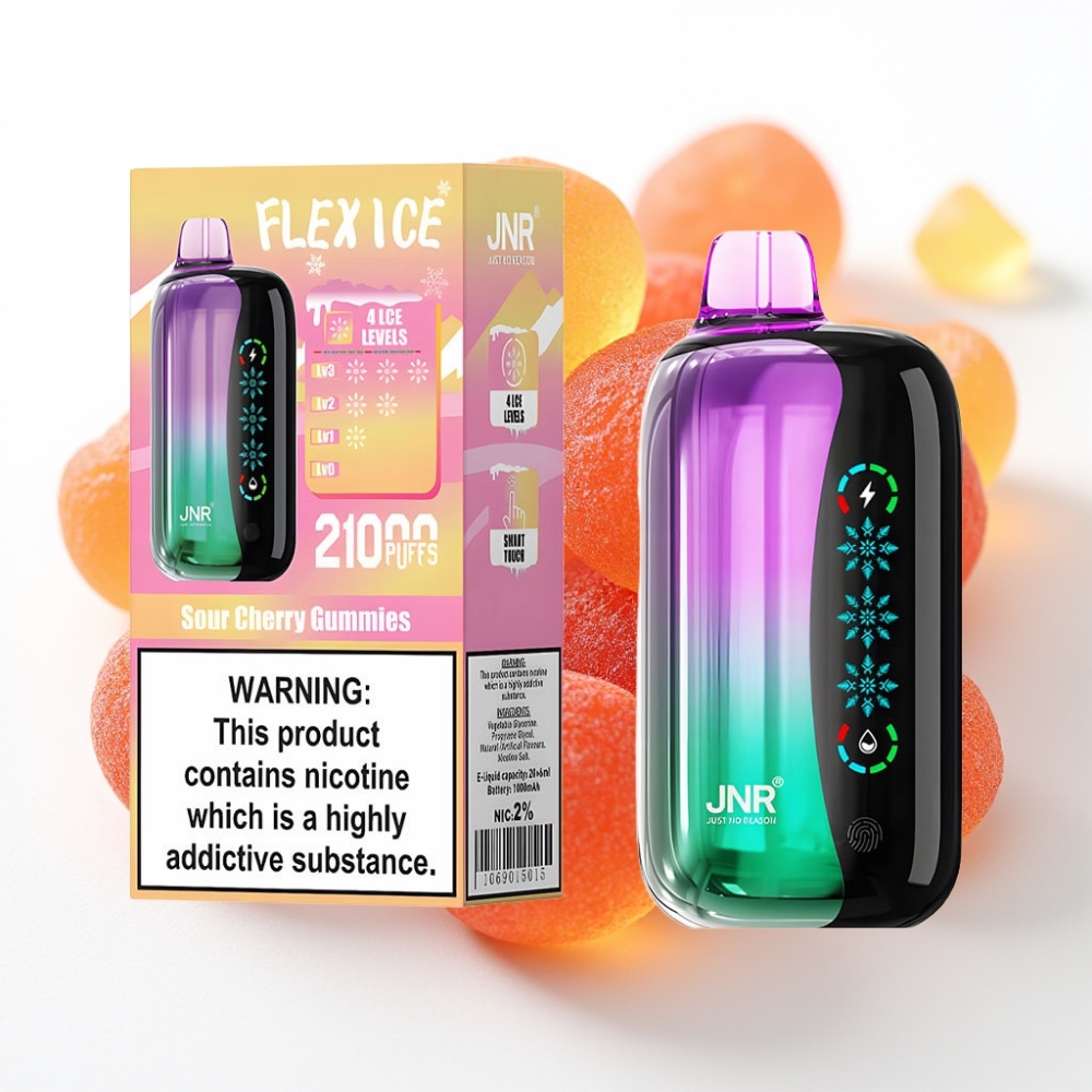 JNR Flex Ice 21000 Puffs 26ml Customizable Airflow Skābā ķiršu konfektes