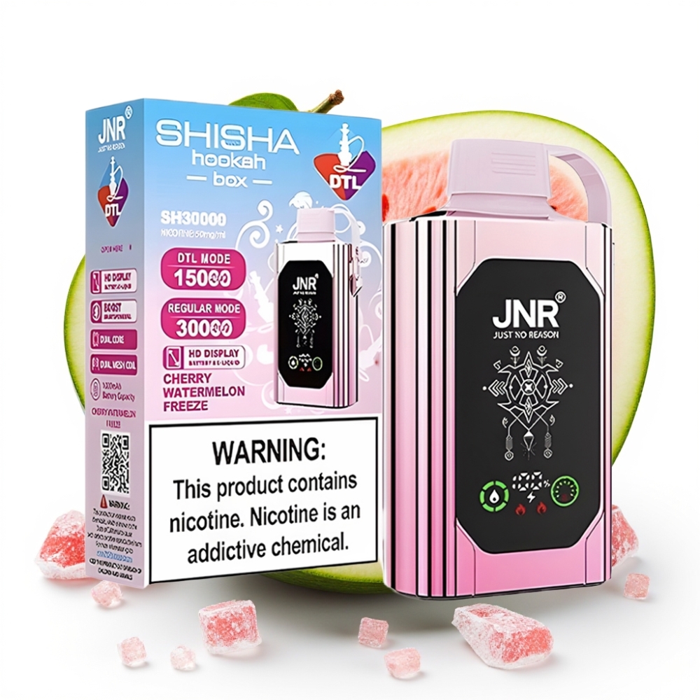 JNR Shisha Hookah Box 20500 Puffs HD Display Dual Mesh Coil Type-C Čeršu Arbūza Ledus