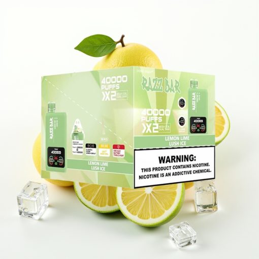 Razz Bar 40000 Puffs Disposable Vape Power Screen Display 1.0Ω×2 Mesh Coil Citrons & Zaļais Ledus